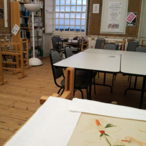 Depuis que je suis rentrée de la Royal School of needlework, j’ai acheté des tréteaux pour mon cadre de broderie et aménagé un espace où travailler proche d’une source lumière naturelle. Cela m’a…